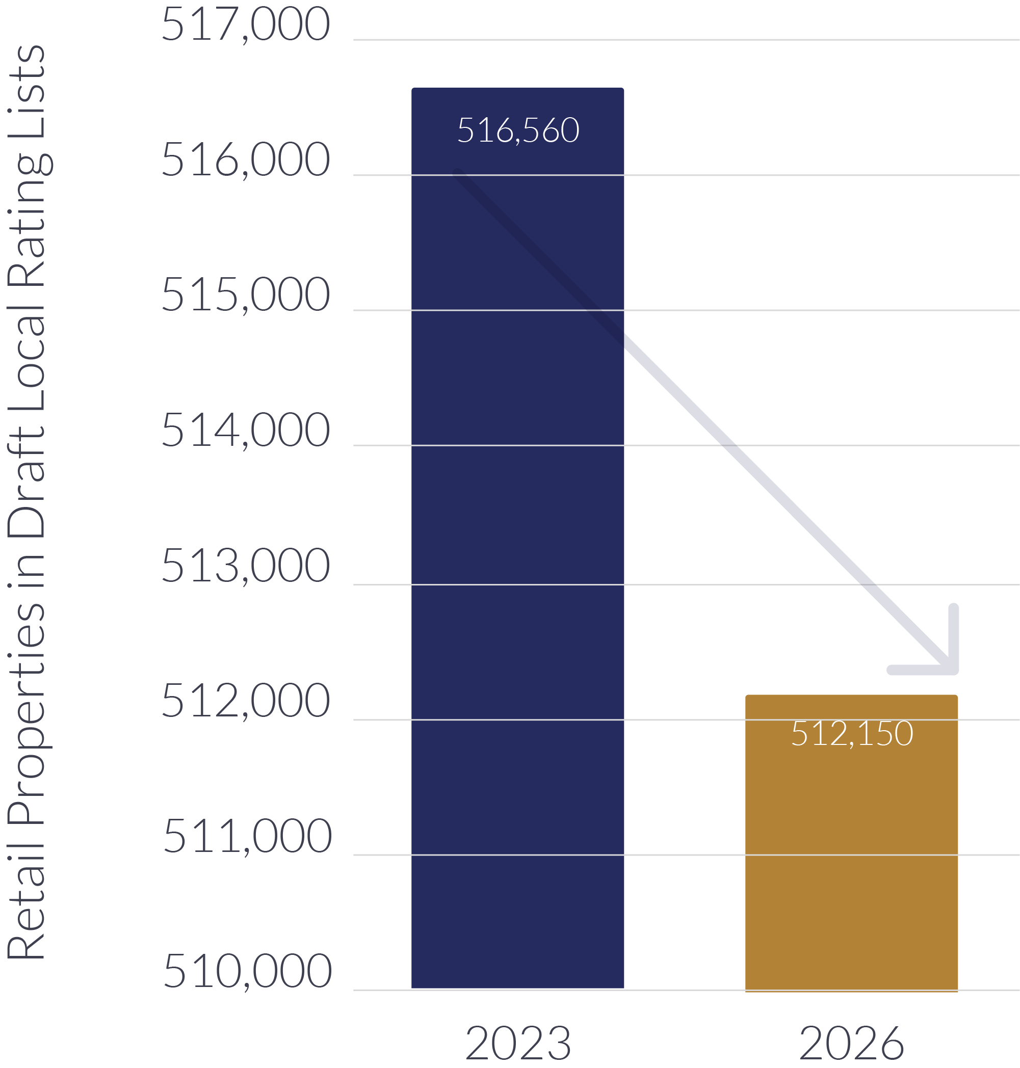 The 2023 draft local rating lists recorded 516,560 retail-classified properties. This comprehensive dataset included: